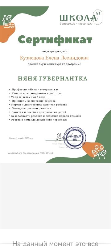 Дополнительное образование, курсы: Сертификат: Курсы нянь.