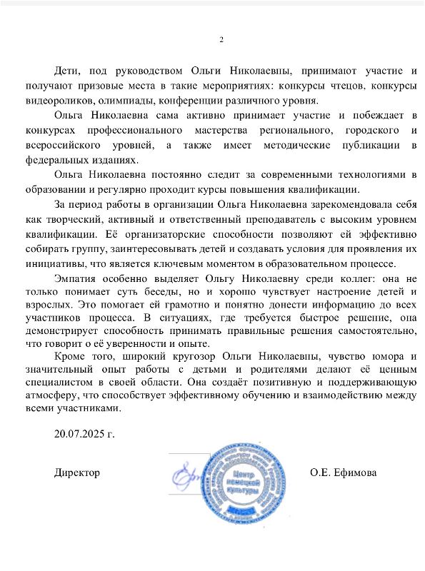 Есть положительная характеристика от директора.