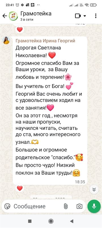 Руководитель кружка "Грамотейка". Есть много положительных отзывов от родителей.
